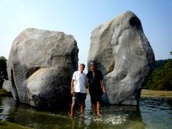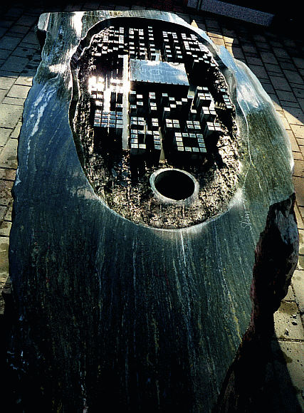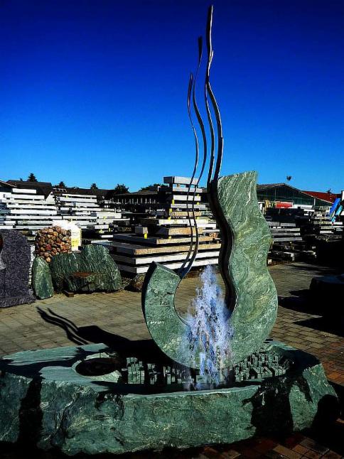 Light-Water-Fountain, Stone and Stainless-steel wave, moving by wind. 260cm x 230cm h.