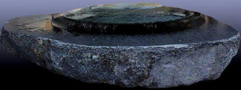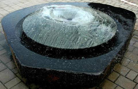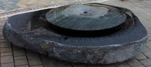 Meditation-Fountain, Disc- Argentin Granit,121cm diameter, Bace Basalt. 160cm x 150cm
